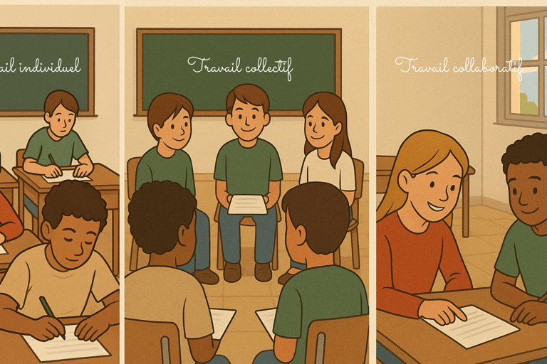 Pour aller au-delà de ce qu'ils savent déjà, les élèves doivent pouvoir travailler par eux-même. Il faut donc trouver un équilibre dans la journée entre le travail personnel, collectif (tous les élèves font le même travail au même moment) et coopératif (entraide et tutorat entre élèves). La logique de ces situations coopératives répond aux dimensions sociales de l'apprentissage : on ne peut apprendre que par soi même (l’effort est personnel) mais on apprend avec l’aide des autres.