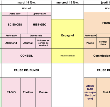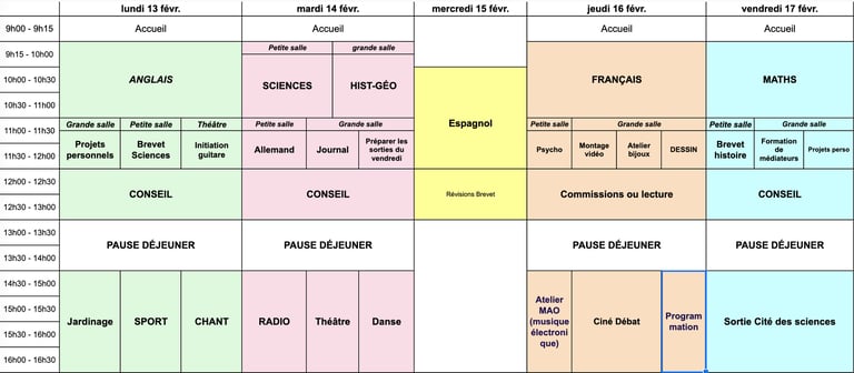L’heure d’arrivée, entre 9h et 9h30, a aussi toujours été discutée avec eux. On devait finir à 16h30 au plus tard, car on était contraints par les lieux. Sinon, on aurait fait autrement, en commençant et finissant plus tard pour respecter le rythme biologique des adolescents.